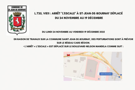 En raison de travaux sur la commune Saint-Jean-De-Bournay, des perturbations sont à prévoir sur le réseau cars Région