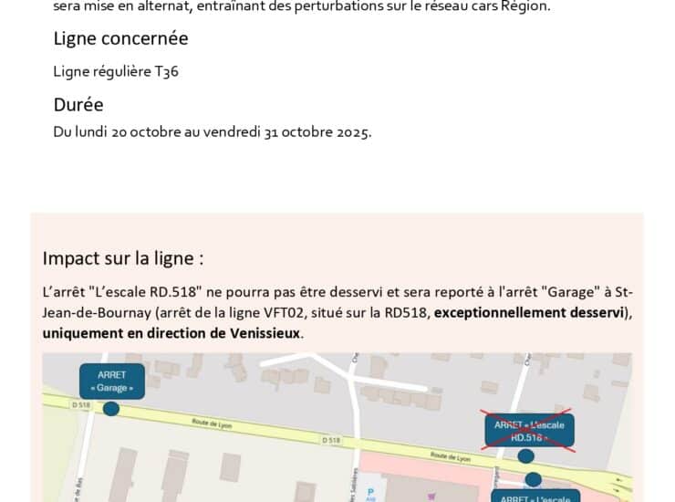 22 Oct Travaux by AdminCom Info – trafic ligne T36🚧 des travaux ont lieu sur la RD518 à St-Jean-de-Bournay du 20 au 31 octobre. Un…