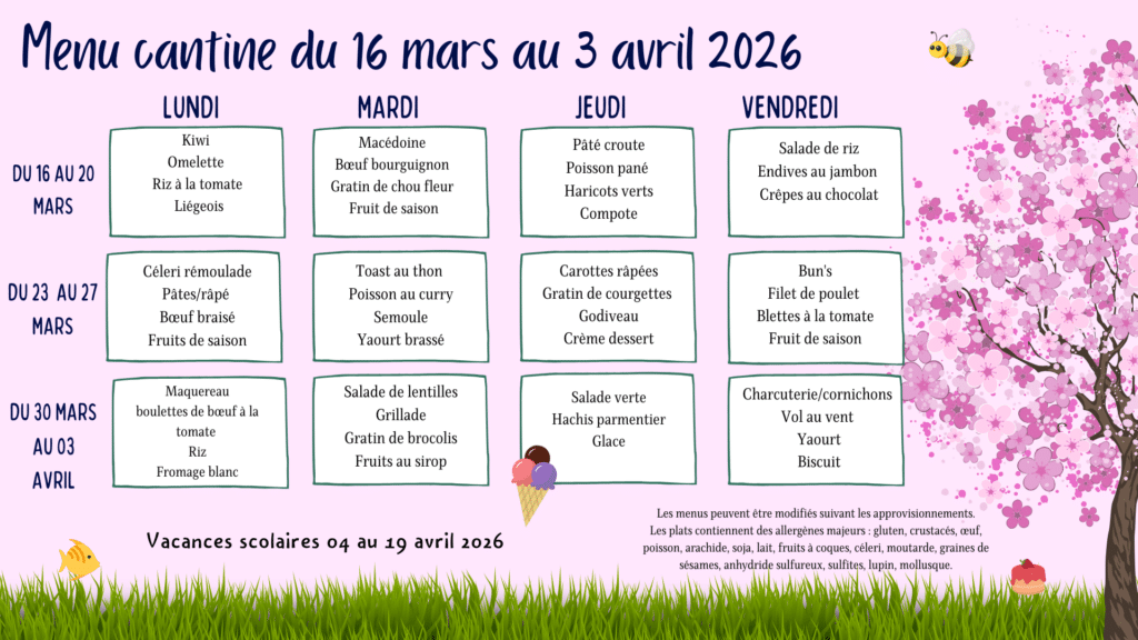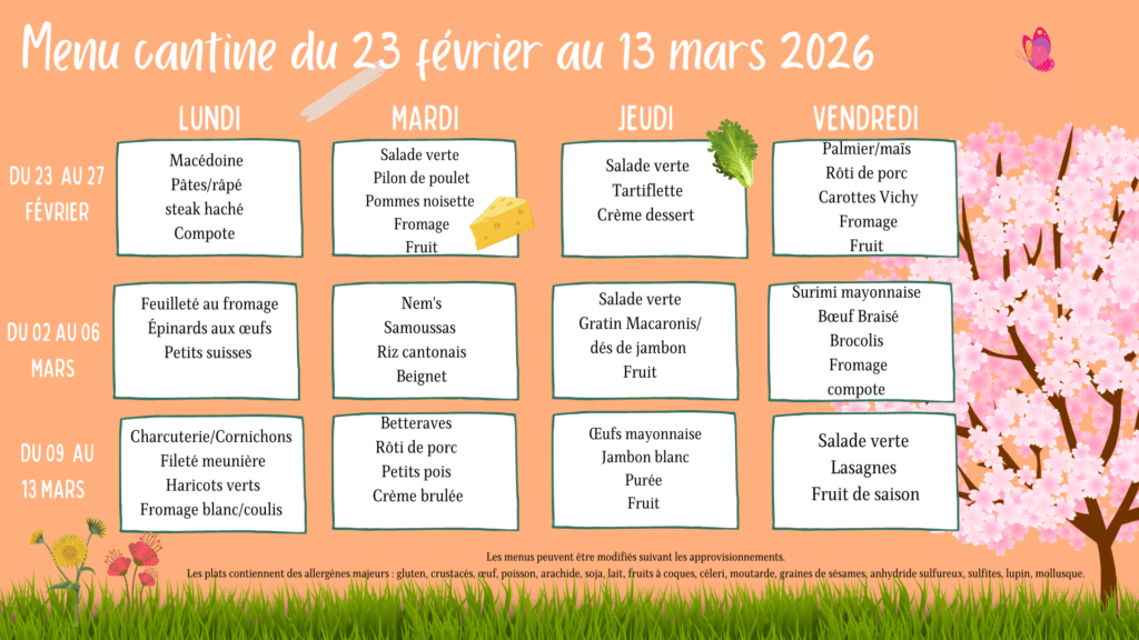 Menu de la cantine